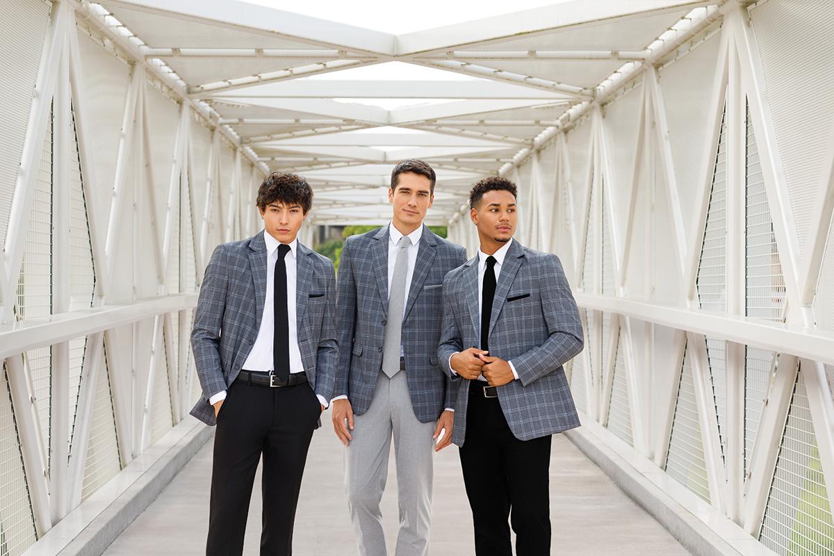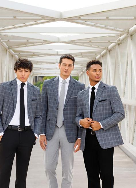 Grey Plaid Stretch Coat 4-Way Stretch Fabric 2 button Slim Fit Package Includes Coat Pant Shirt Vest Tie * Sales tax and damage waiver are not included
