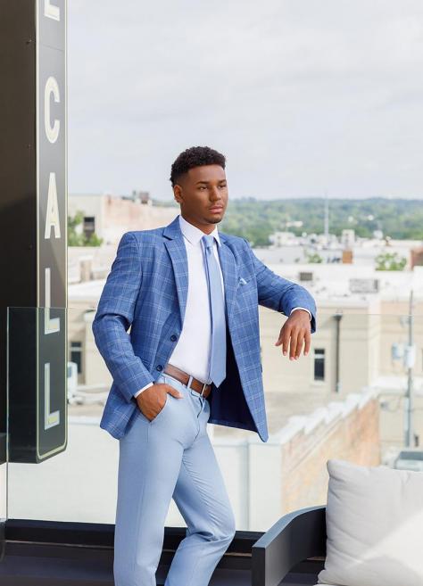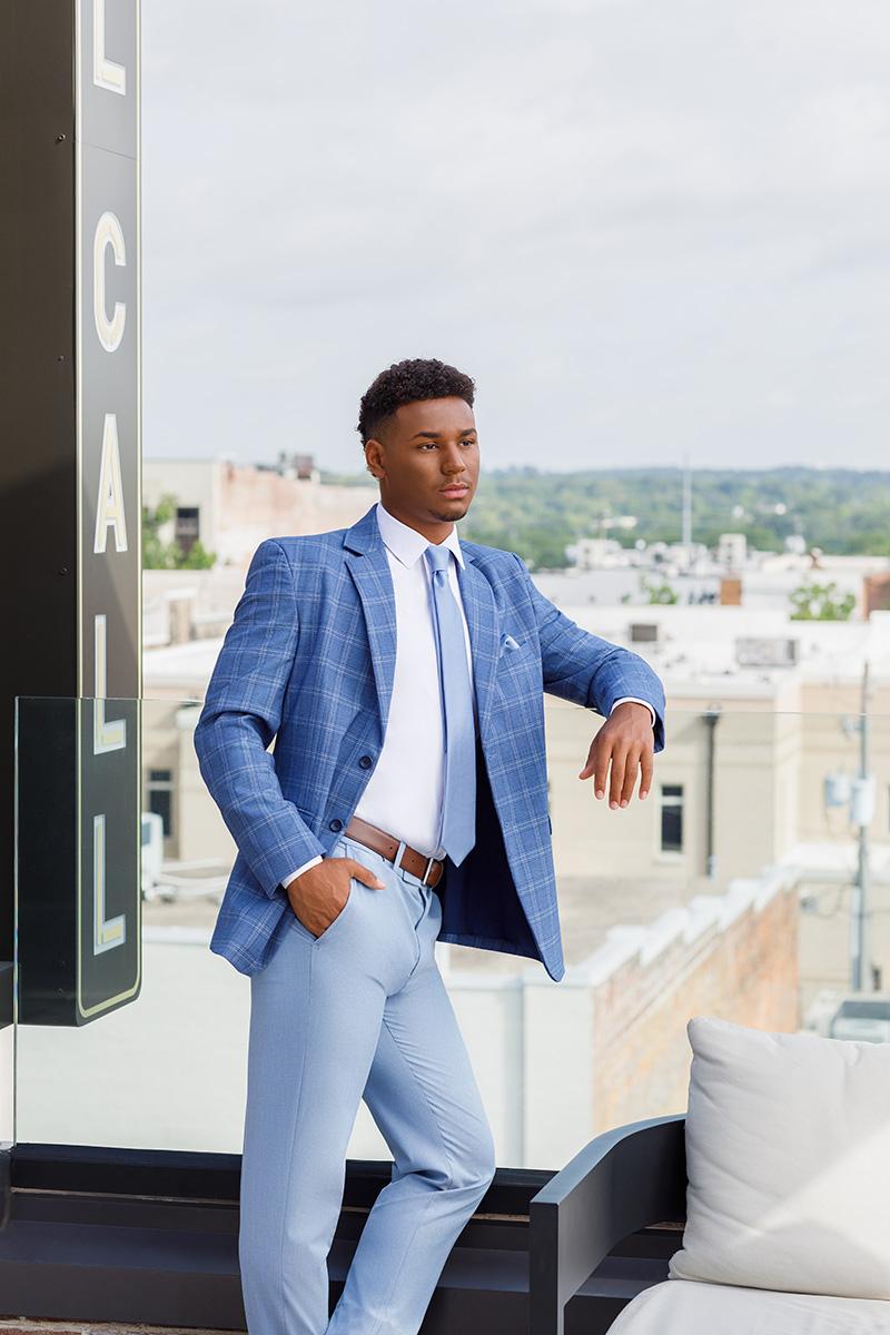 Indigo Plaid Stretch Suit 4 -Way Stretch Fabric 2 button Slim Fit Package Includes Coat Pant Shirt Vest Tie * Sales tax and damage waiver are not included