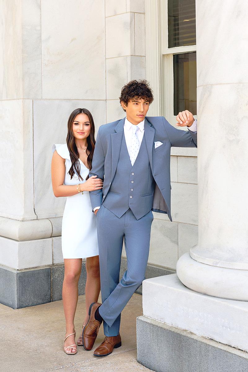 Slate Blue Metro $236.45 - Rental Package $250.95 - Regularly 4 Way Stretch Fabric 2 button Slim Fit Package Includes Coat Pant Shirt Vest Tie * Sales tax and damage waiver are not included