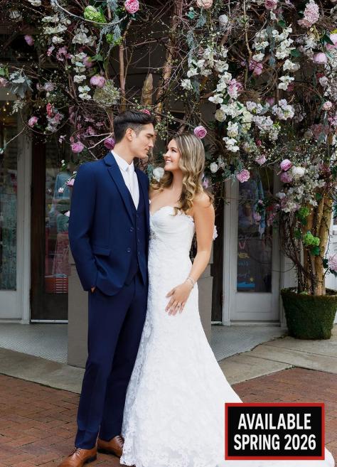 True Navy Metro Stretch $199.45 - Rental Package $213.95 - Regularly 4 wat stretch fabric 2-Button Slim Fit Available Spring 2026 Package Includes Coat Pant Shirt Vest Tie Pocket * Damage waiver not included. Shoes extra.