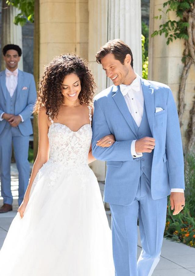 Suits are a great idea for a casual wedding, summer wedding, or just for grooms and groomsmen who don’t like tuxedos. With Baryames, you can be confident that your groomsmen will be looking their best in the suits you’ve picked out. We have many options regarding color, style, and fit so that you can pick out your perfect suit and leave the rest up to us. We’ll get all the groomsmen fitted for their suits and make sure the groom looks perfect in his wedding suit before he leaves the store.