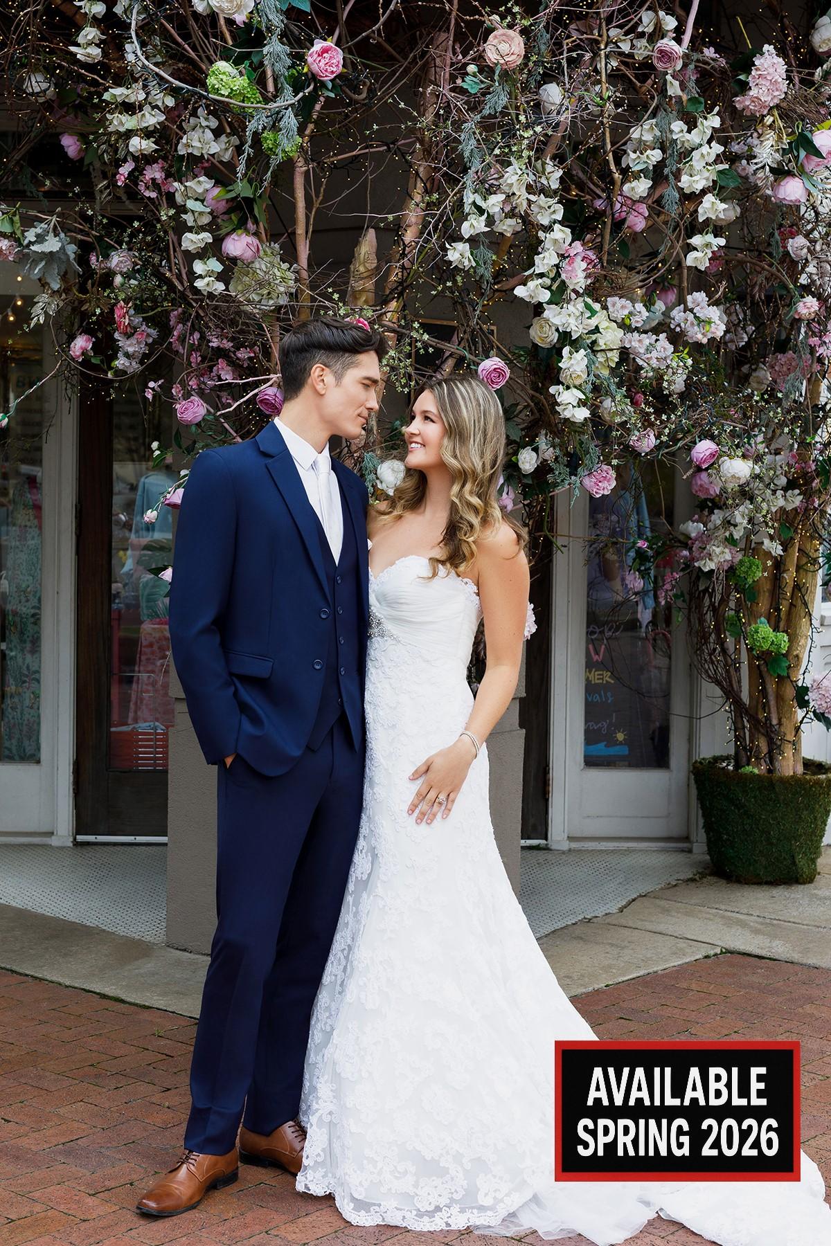 True Navy Metro Stretch $199.45 - Rental Package $213.95 - Regularly 4 wat stretch fabric 2-Button Slim Fit Available Spring 2026 Package Includes Coat Pant Shirt Vest Tie Pocket * Damage waiver not included. Shoes extra.